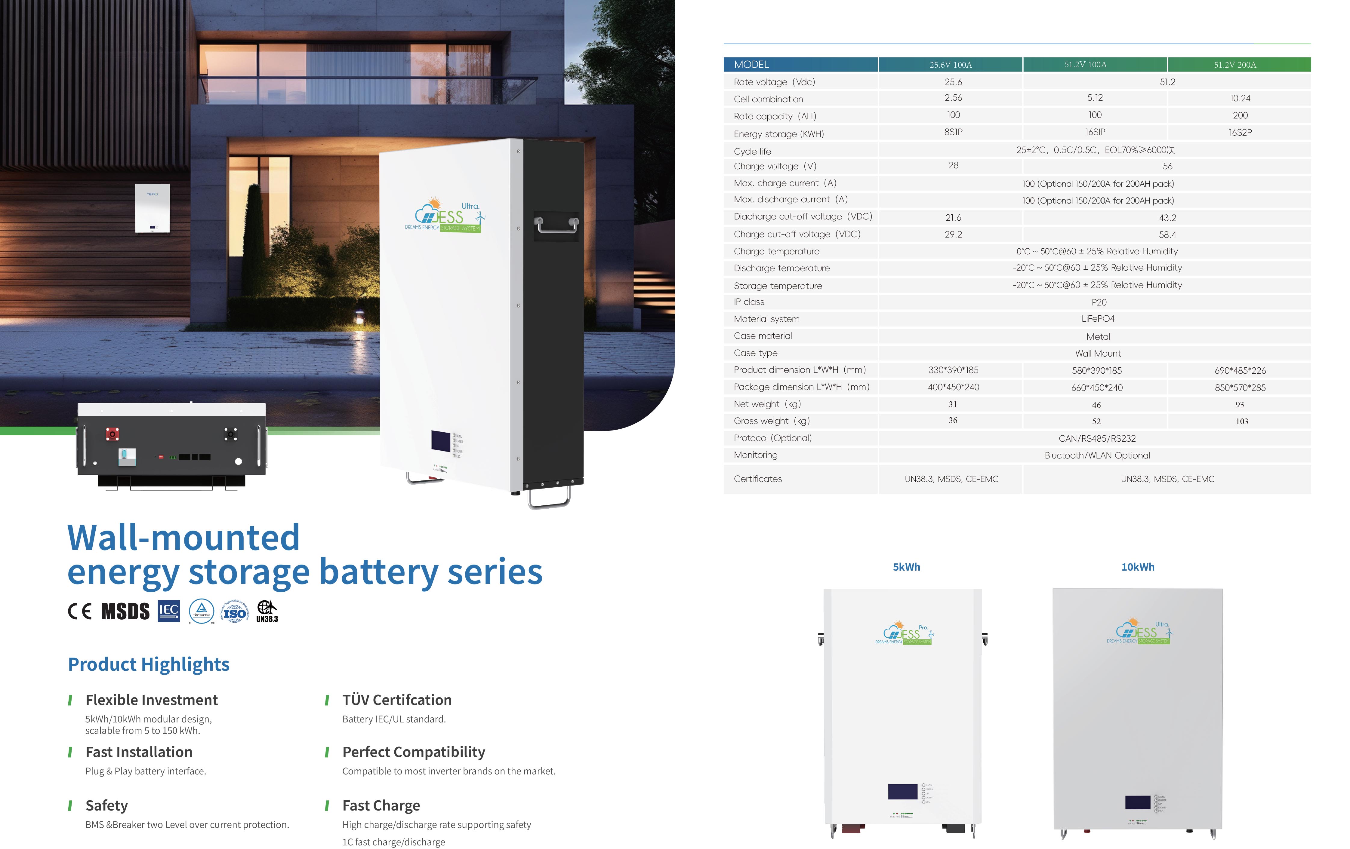25.6V 100A Lithium Battery Wall Mount | DESSPRO