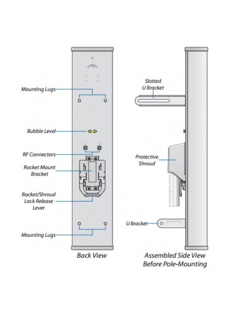Every airMAX® Antenna has a built-in Rocket mount, so no tools are needed to install the Rocket BaseStation.
