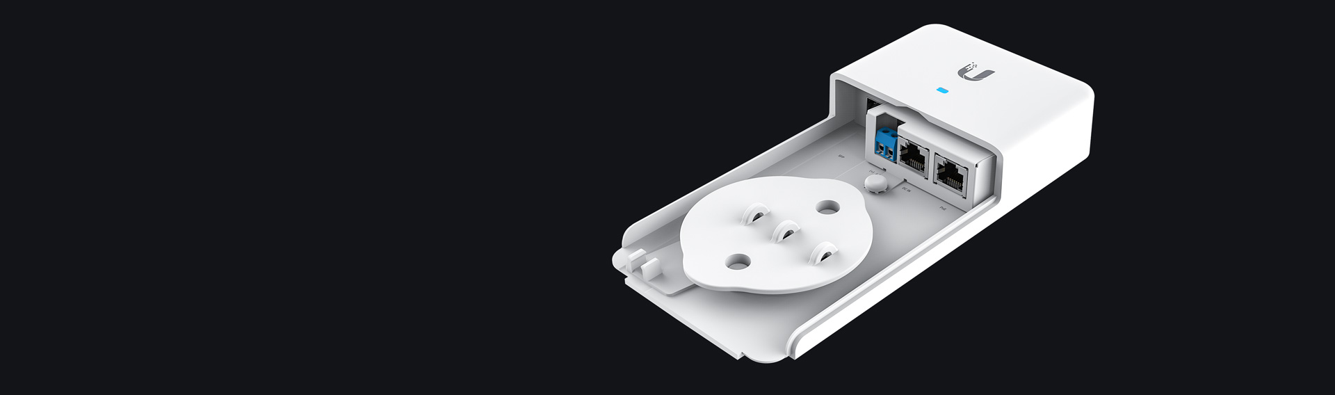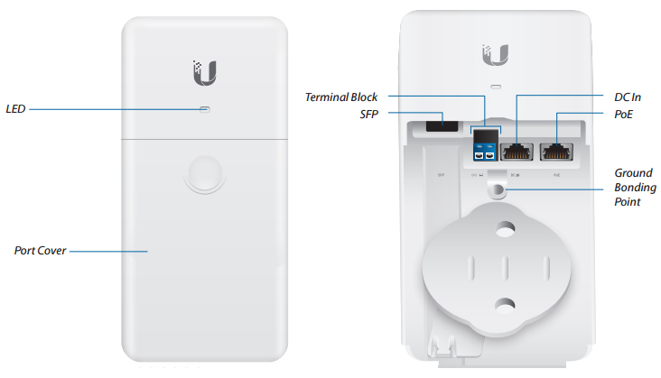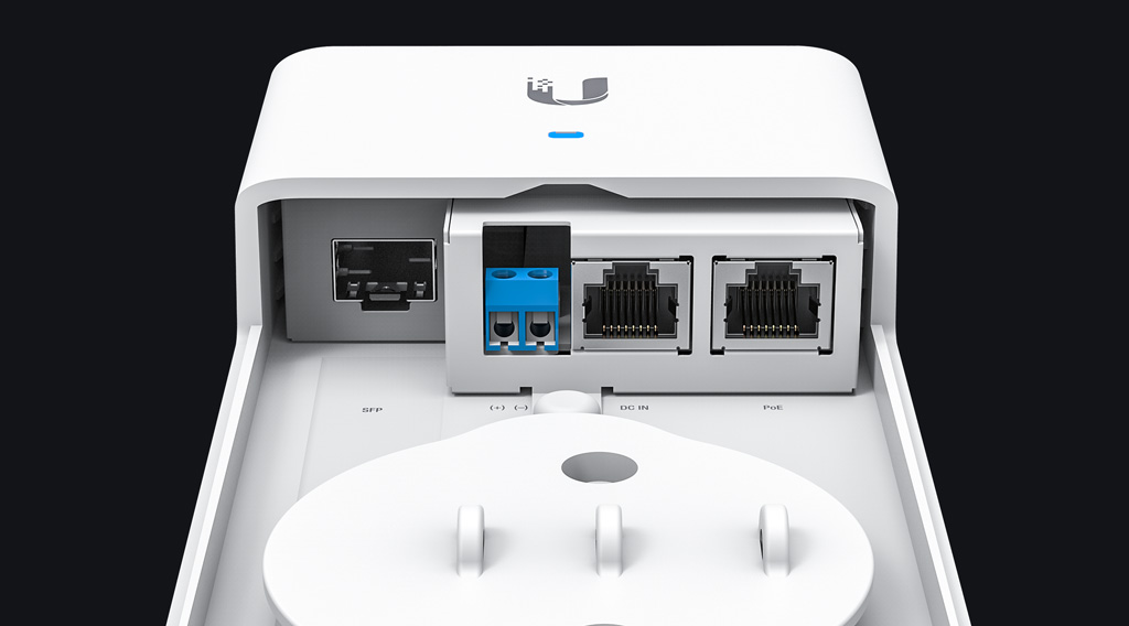 The FiberPoE features an outdoor weatherproof form factor with integrated strain relief management.