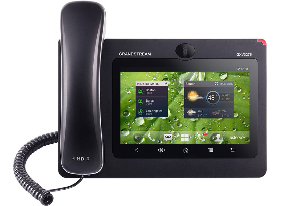 The GXV3275 IP Video Phone for Android™ delivers a powerful voice, video and multimedia business communications experience to keep workers in-touch and up-to-date. This one-of-a-kind 6-line IP phone features a tablet-like 7 inch touch screen and, in addition to voice calls allows users to keep in touch with co-workers and clients through a variety of video calling platforms (Grandstream’s free IPVideoTalk service in addition to any Android app, such as Skype, Google Hangouts, and more). This IP Video Phone for Android offers full access to the Google Play Store and the millions of Android apps – including powerful business productivity apps like SalesForce1, GoToMeeting, service provider apps and more. Additional features include integrated Bluetooth for pairing of headset and mobile devices for contact book/calendar exchange and call transferring, Gigabit ports, integrated WiFi, and more.