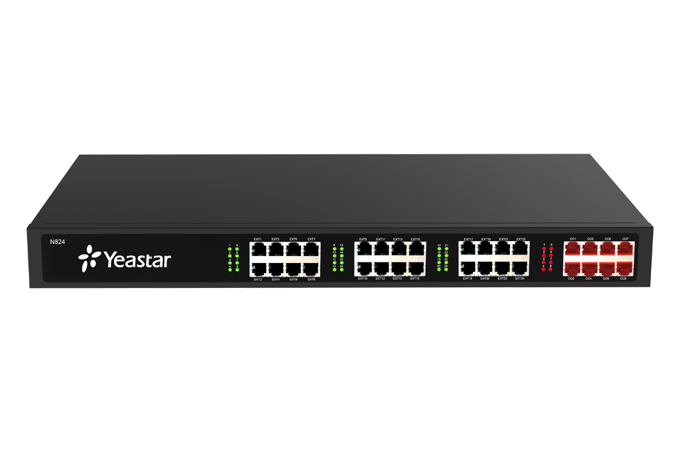 Yeastar N824 maximizes cost-effectiveness with 8 CO lines, 24 analog extensions, 8 SIP extensions, 4 SIP trunks, and the ability to handle calls with your mobile phone.