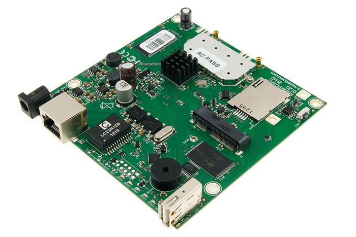 The RB912UAG-2HPnD is a very versatile device. It is a small wireless router with an integrated 2.4GHz high power wireless card and an additional miniPCIe slot for 802.11 wireless, or 3G card. The Gigabit port helps to utilize the full potential of 802.11n wireless speeds. The integrated wireless card is capable of up to 1000mW output power. It has built in 16kV ESD protection on both the Ethernet and the MMCX ports.
