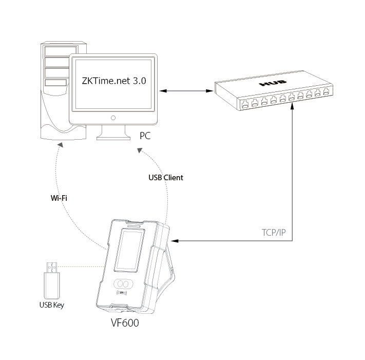 VF600 is a face identification T&A terminal with face, PIN and RFID recognition modes. With the latest face identification algorithm and streamlined technology, it can hold 800face templates without dividing into groups and complete verification in less than 1 second. Communicating via Wi-Fi(optional), TCP/IP, and USB (host and client), it can ensure a smooth connection and data transfer. All the settings can be easily done on 3-inch touch screen. It has been elaborately designed and finely processed to match your slap-up office perfectly.